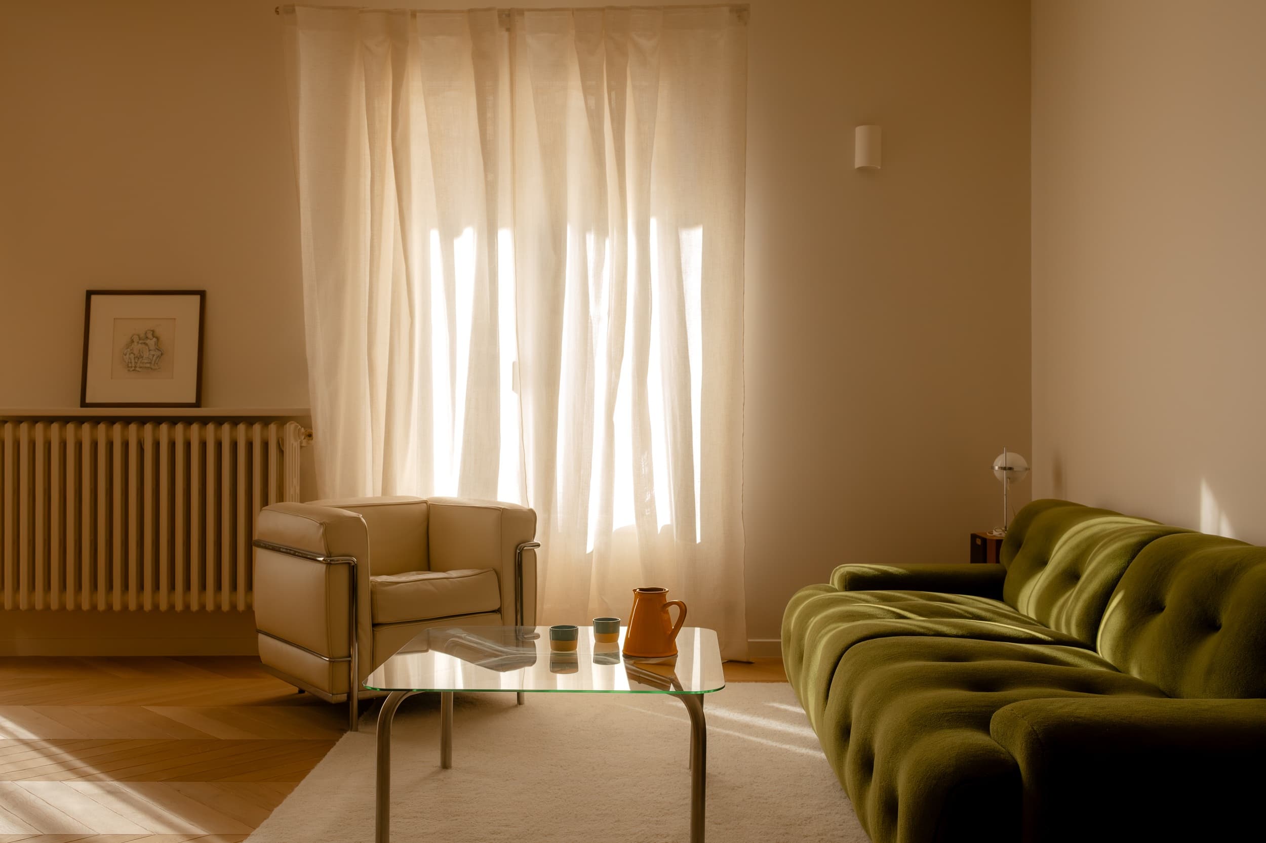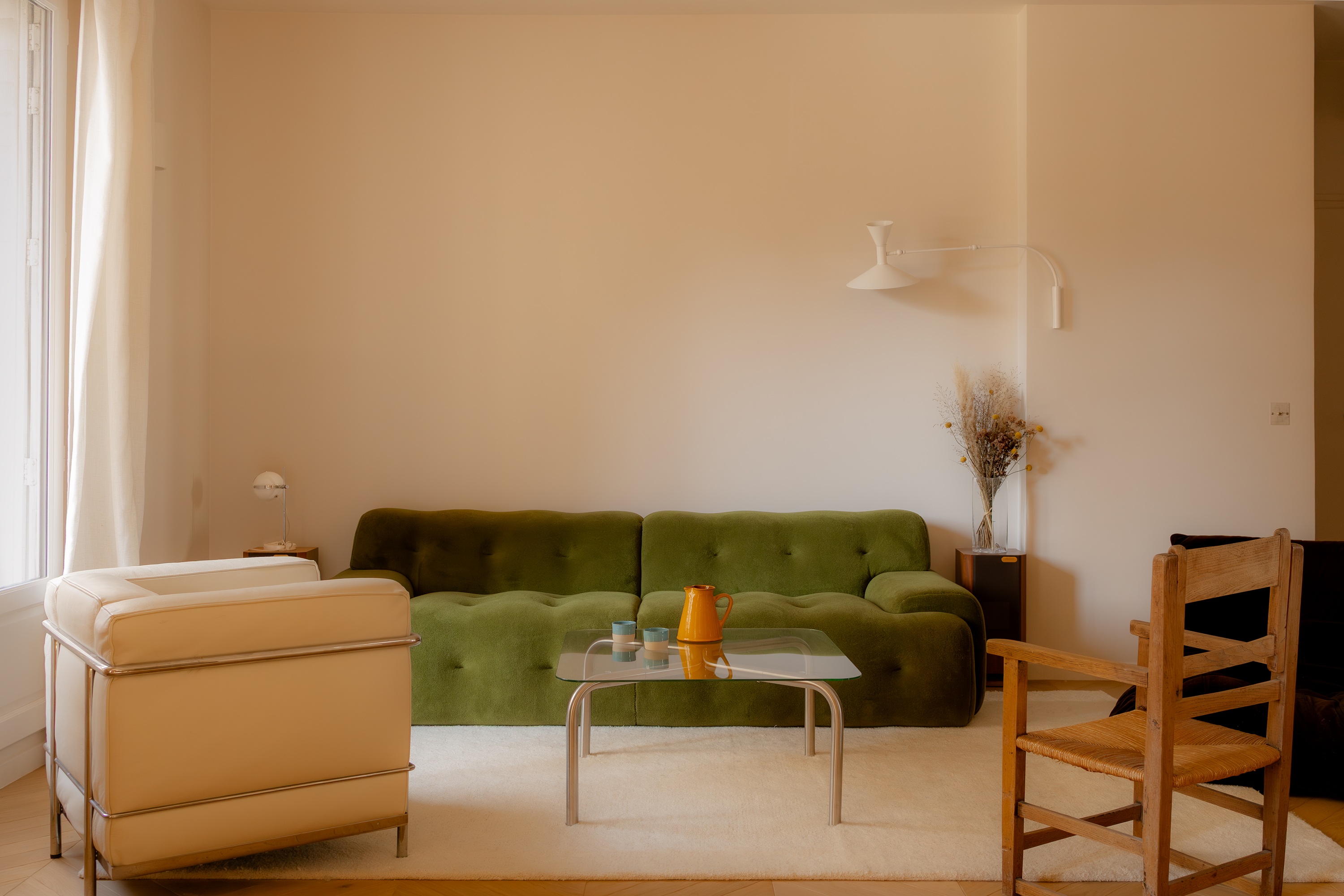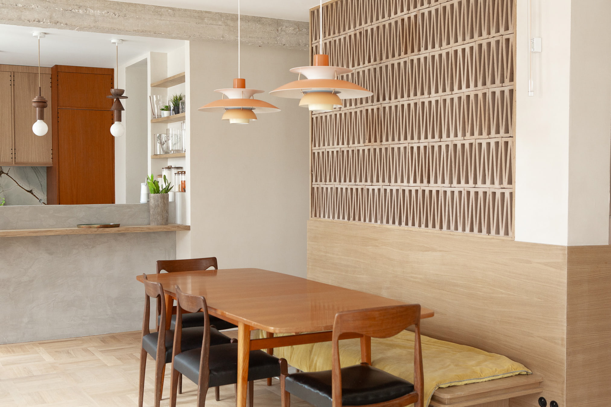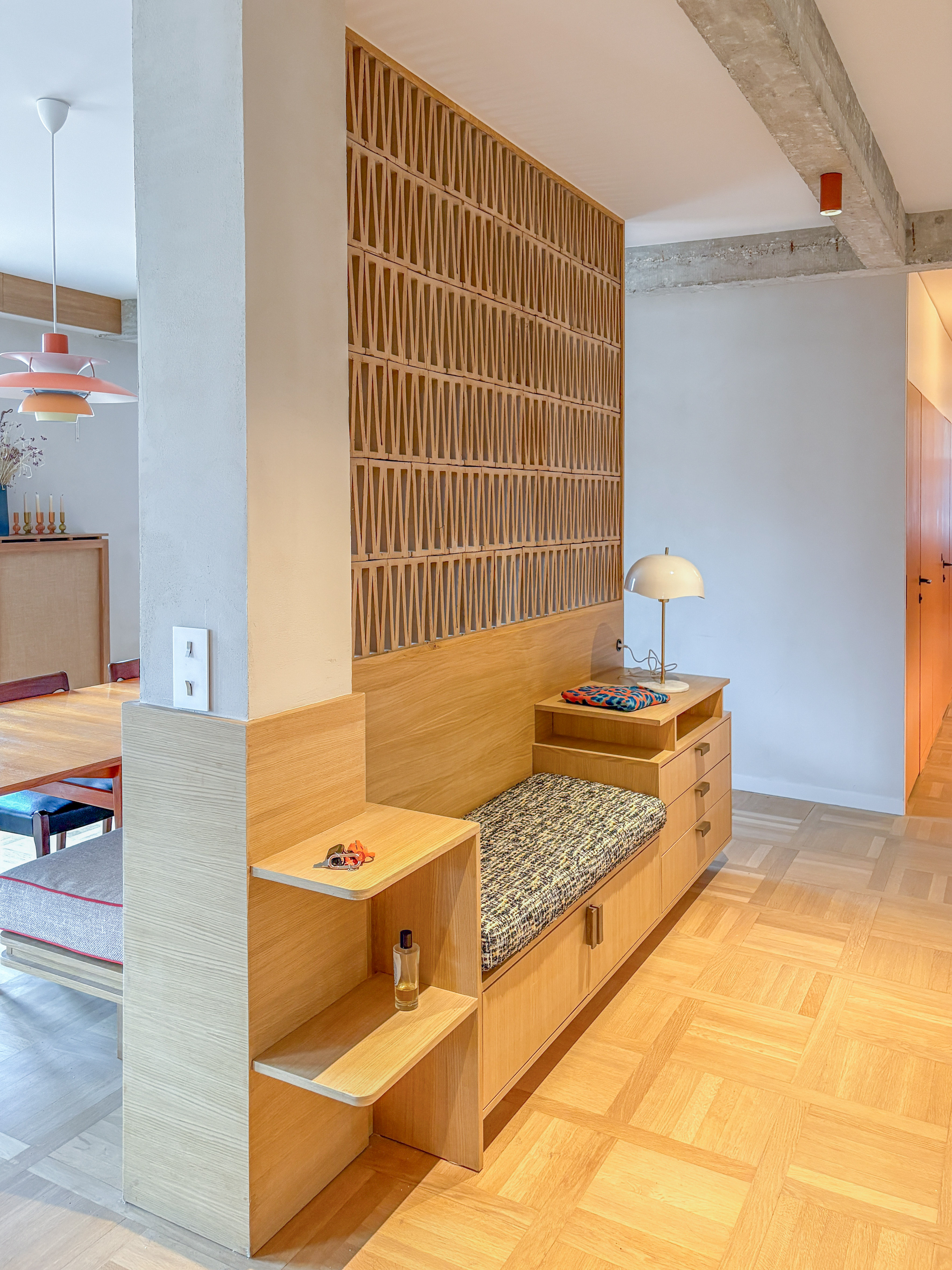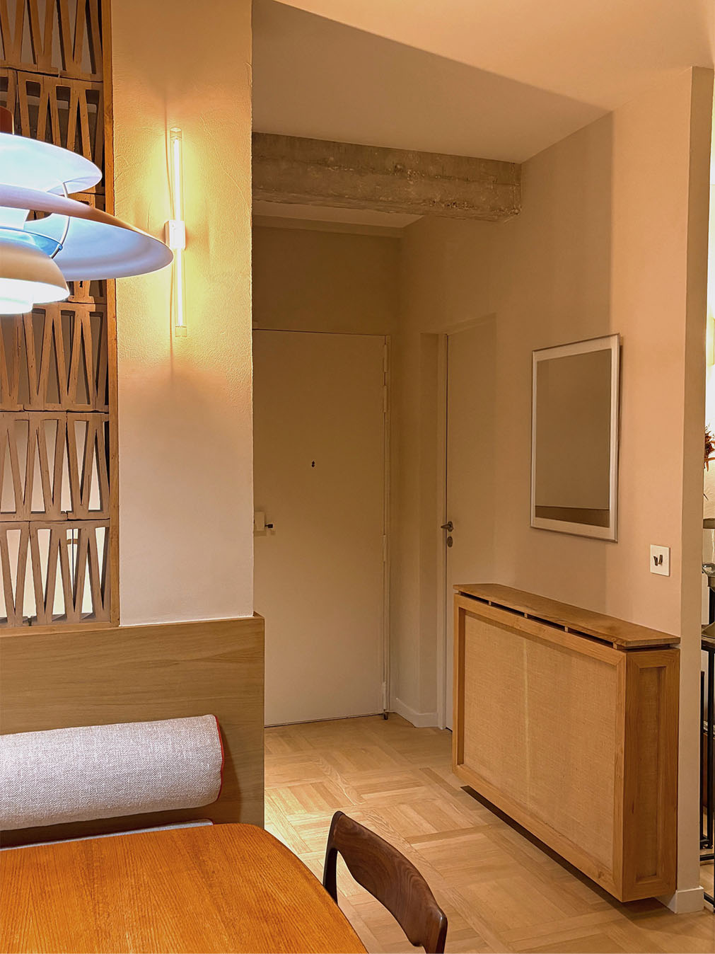 Un appartement profondément transformé, mais cohérent : chaleureux, structuré, ouvert sur des volumes que les années 1970 n'avaient jamais vraiment libérés.
